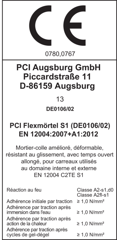 - Conforme C2TE S1 suivant DIN EN 12 004 et « Directive pour mortiers flex ».